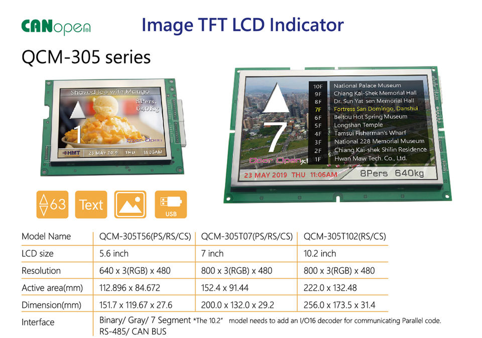 QCM-305T102 HMT 10.2นิ้ว TFT จอ LCD ดีไซน์ทันสมัยสำหรับลิฟท์รับประกัน1ปี spi/rsl/ RS485บัสอินเตอร์เฟซแบบขนาน