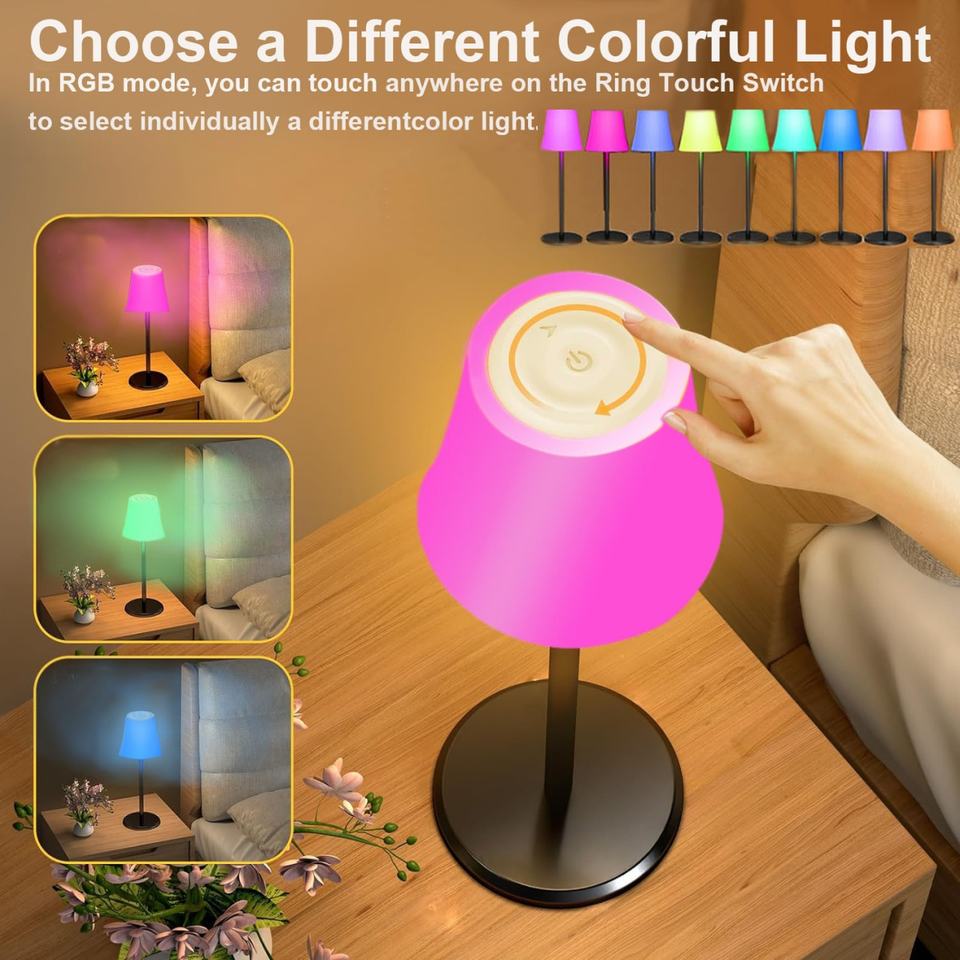 ไฟกลางคืนกันน้ำสำหรับภายนอกอาคาร QF-240 แสงวอร์มไวท์และ RGB ไร้สาย ไฟ LED แบบไร้สายสำหรับวางบนเตียง โต๊ะทำงาน หรือโต๊ะอาหาร