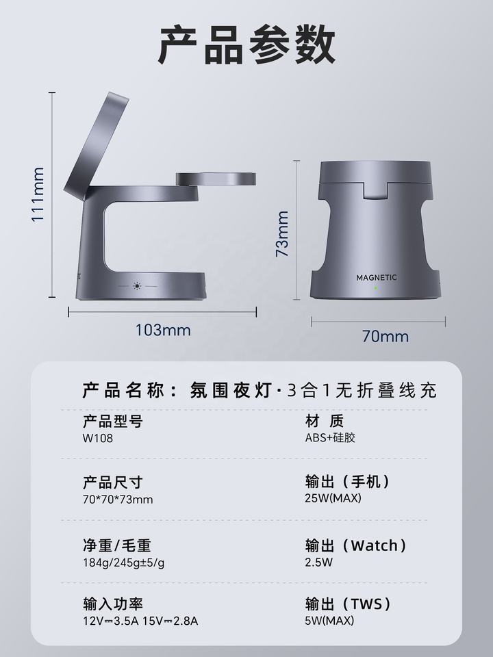 ชื่อสินค้า:แท่นชาร์จไร้สายแม่เหล็ก 25W