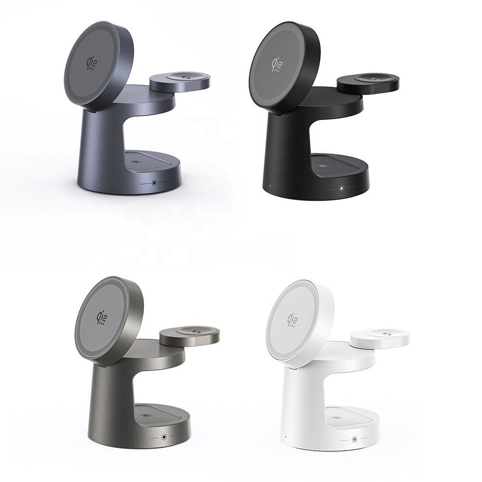 ที่ชาร์จไร้สายแม่เหล็กแบบพกพา QI2.2 ดีไซน์มินิขนาดกะทัดรัดอเนกประสงค์ พร้อมลำโพงและไฟกลางคืนสำหรับ iPhone และ Apple Watch