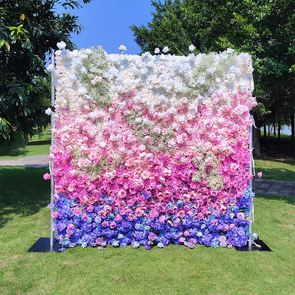 ฉากหลังดอกไม้ไล่เฉดสีผ้าไหมเทียม QIHAO 3D/5D สำหรับงานแต่งงานและงานปาร์ตี้ คลังสินค้ากวางตุ้ง