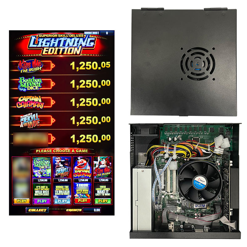 เครื่องเกมหยอดเหรียญ QIQU รุ่นยอดนิยม หน้าจอแนวตั้ง 43 นิ้ว รุ่น Lightning Edition 5 in 1 สำหรับห้องเกม