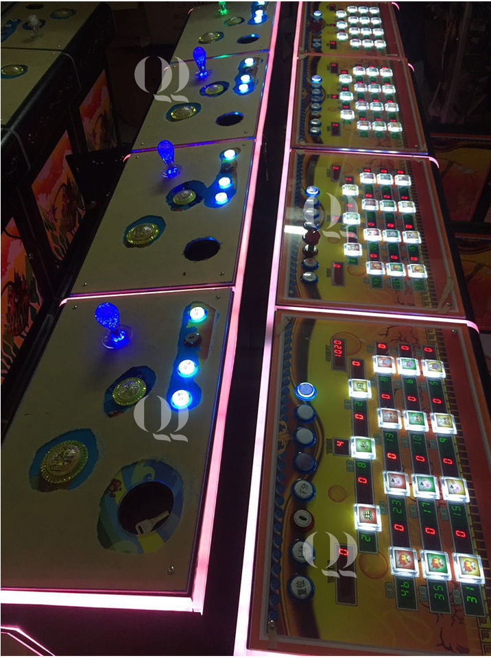 Qiqu โต๊ะปลาปุ่มหรูหราสำหรับผู้เล่น4คนปรับแต่งได้โต๊ะเล่นเกมปลานักล่าปลาแบบใช้เหรียญ