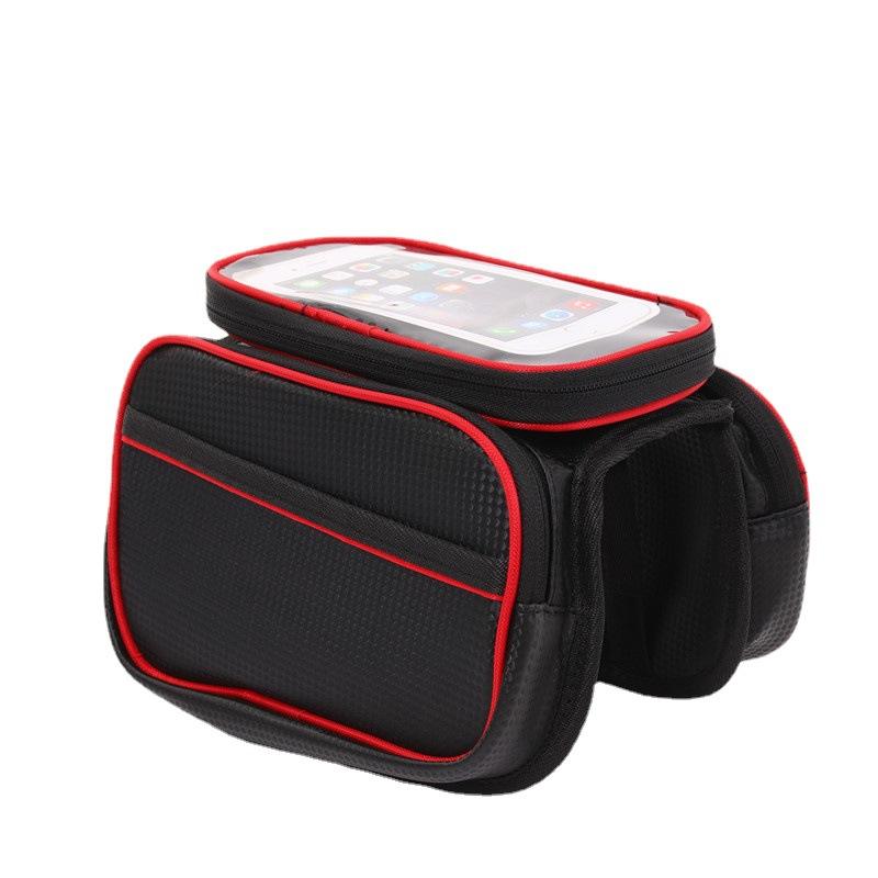 กระเป๋าจักรยานเสือภูเขา QJCB-1ความจุขนาดใหญ่กันน้ำหน้าจอสัมผัสกระเป๋าเก็บโทรศัพท์กระเป๋าจักรยานด้านหน้าสีดำสีแดงสีเขียวสีฟ้า