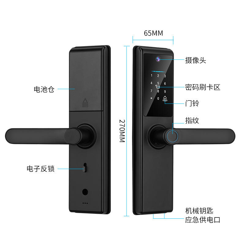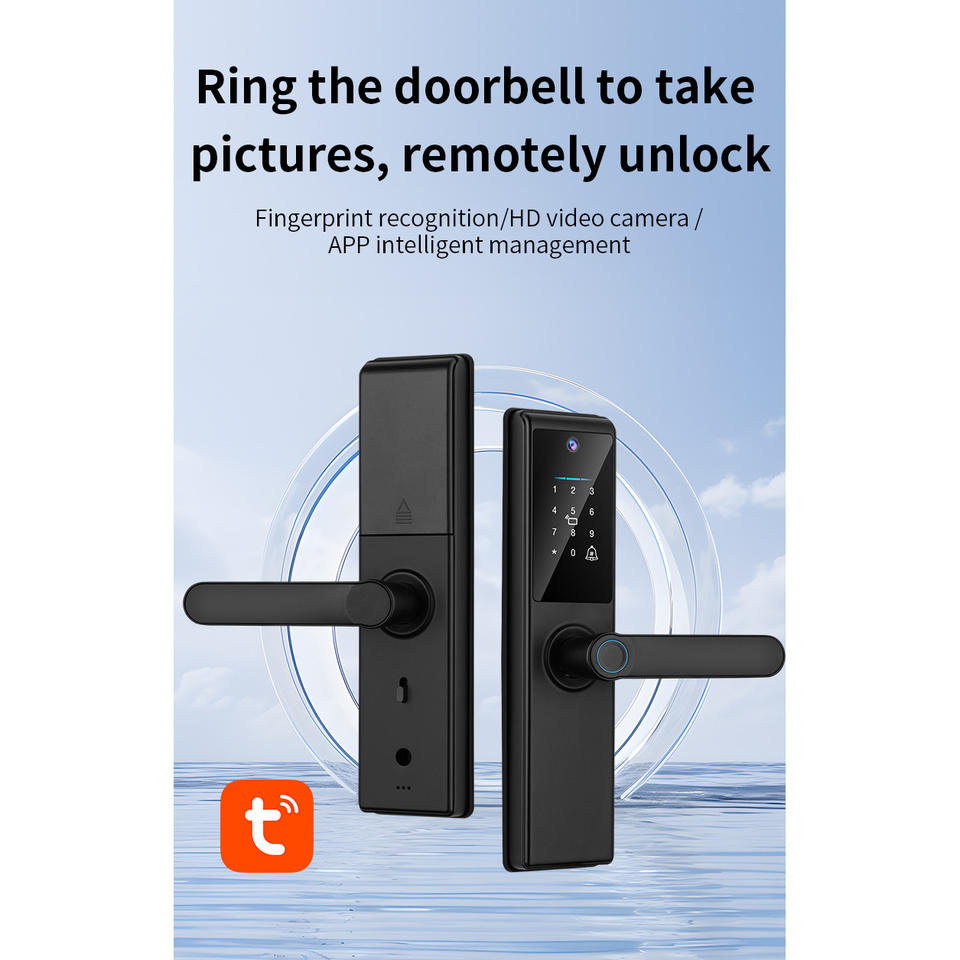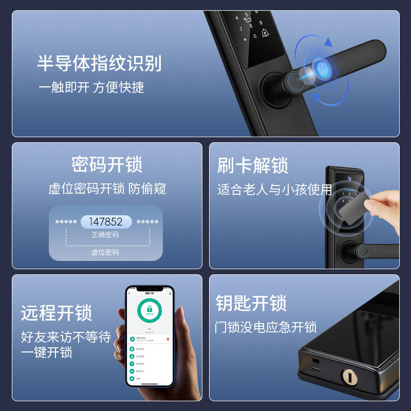 QLEUNG S821max สมาร์ทล็อคประตู สีดำ ระบบสแกนลายนิ้วมือ รหัสผ่าน บัตร ควบคุมผ่านแอพพลิเคชั่น สำหรับใช้งานภายใน