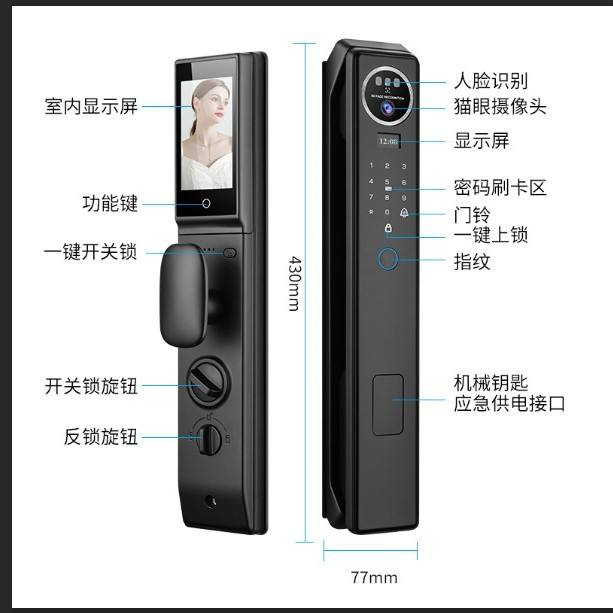 QLEUNG S959max สมาร์ทล็อคประตูอัจฉริยะ พร้อมระบบจดจำใบหน้า วิดีโออินเตอร์คอม รหัสผ่าน และการเข้าถึงผ่านมือถือ
