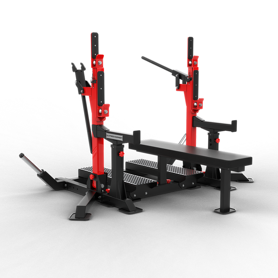 QLI QPDR83 แร็คยกน้ำหนักแบบคู่สำหรับงานหนัก ออกแบบมาเพื่อการสควอท เบนช์เพรส และการเคลื่อนไหวด้วยบาร์โอลิมปิกในโรงยิมฝึกความแข็งแรง