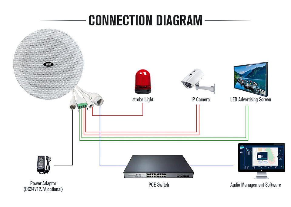 QQQCHINA ลำโพง SIP-805SH เพดาน10W POE วูฟเฟอร์6.5นิ้วพร้อมเสียงที่ชัดเจนสำหรับระบบเฝ้าระวัง