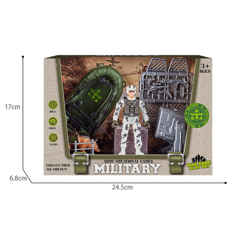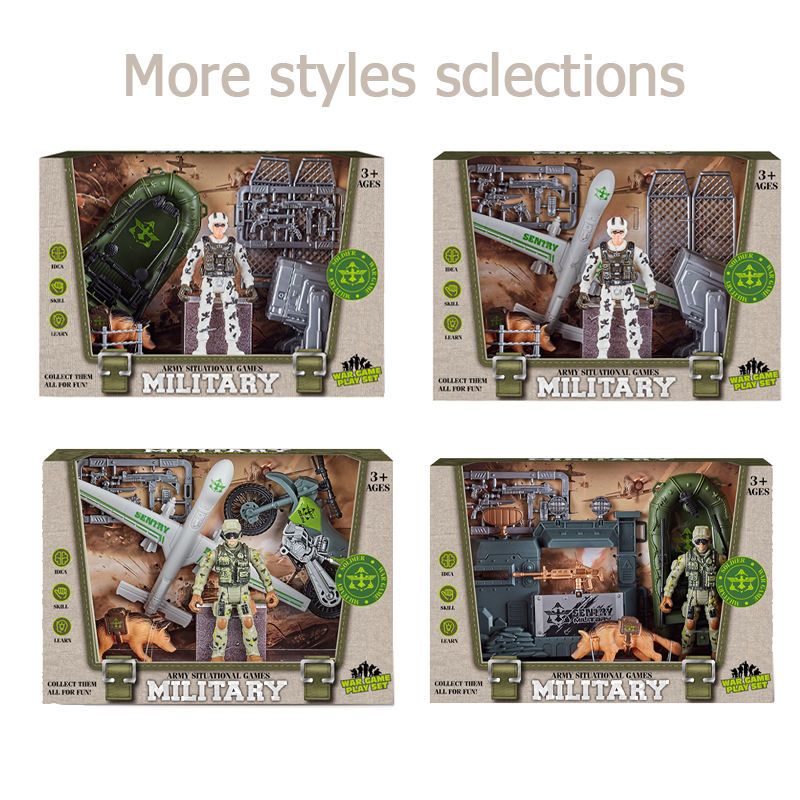 คำอธิบาย:ชุดของเล่นทหารพร้อมอุปกรณ์เสริมเกี่ยวกับอาวุธ