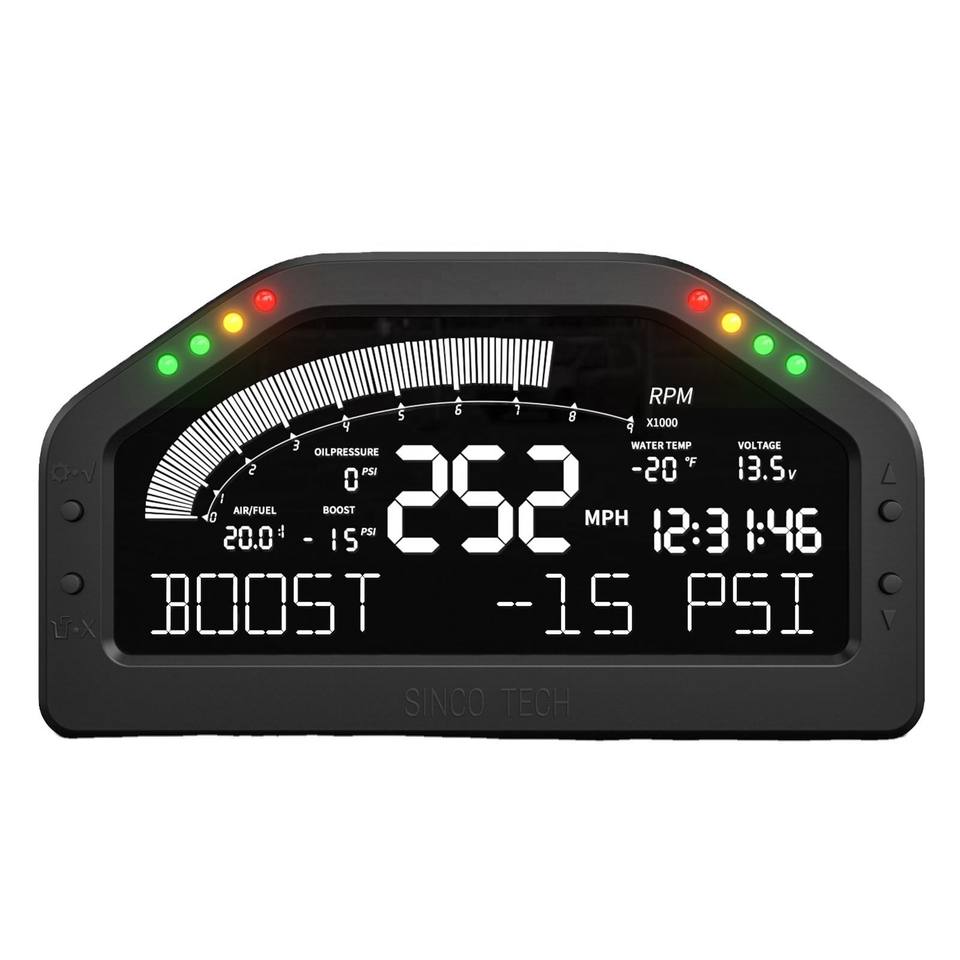 เกจวัดอเนกประสงค์ QSF SincoTech สำหรับรถแข่ง จอ LCD แสดงค่าบูสต์ อัตราส่วนผสมน้ำมันเชื้อเพลิง (AFR) อุณหภูมิไอเสีย (EGT) แรงดันน้ำมัน ความร้อนของน้ำ แรงดันไฟฟ้า ความเร็ว รอบเครื่องยนต์ (RPM) ระยะทางสะสม (ODO) 10-in-1 รุ่น DO922