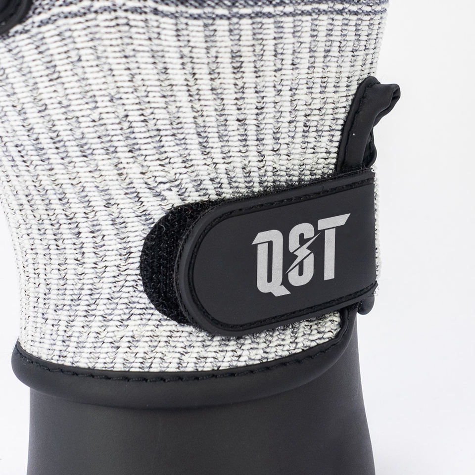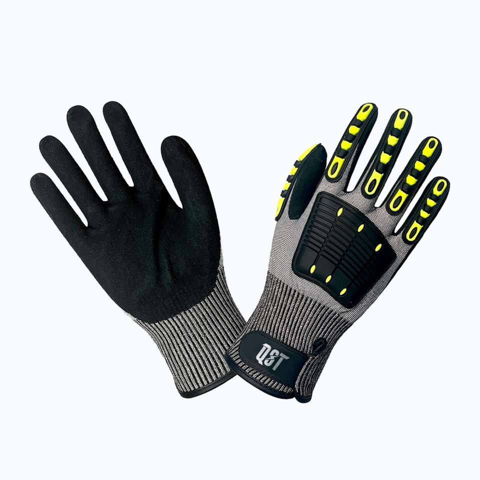 QST ถุงมือหนังกันไฟป้องกันการกระแทกตัดฝ่าเท้าทรายไนไตรล์ออกแบบตามหลักสรีรศาสตร์หน้าจอสัมผัสเข้ากันได้กำหนดเอง