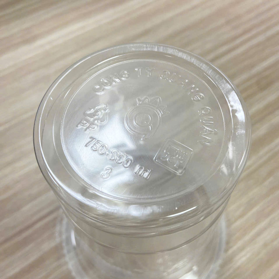 Quang Quan ถ้วยพลาสติก PP ใสแบบใช้แล้วทิ้งขนาด117มม. 750มล. สไตล์ผนังเดี่ยวพร้อมฝาปิดสำหรับกาแฟสมูทตี้ชาเลมอนฟองชานม