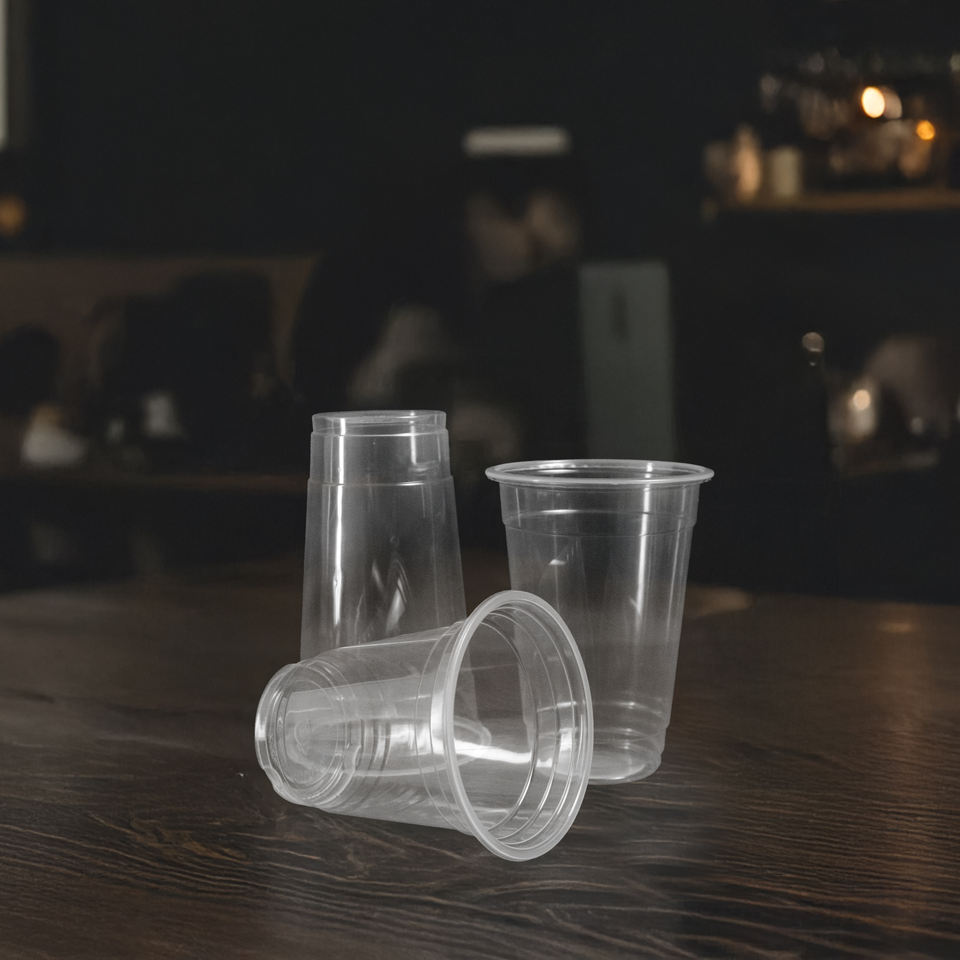 Quang Quan เครื่องดื่มกาแฟเย็นสำหรับของหวานแบบใช้แล้วทิ้งแก้ว PP ขนาด95มม. ความจุ16/20/24ออนซ์แบบใช้แล้วทิ้ง