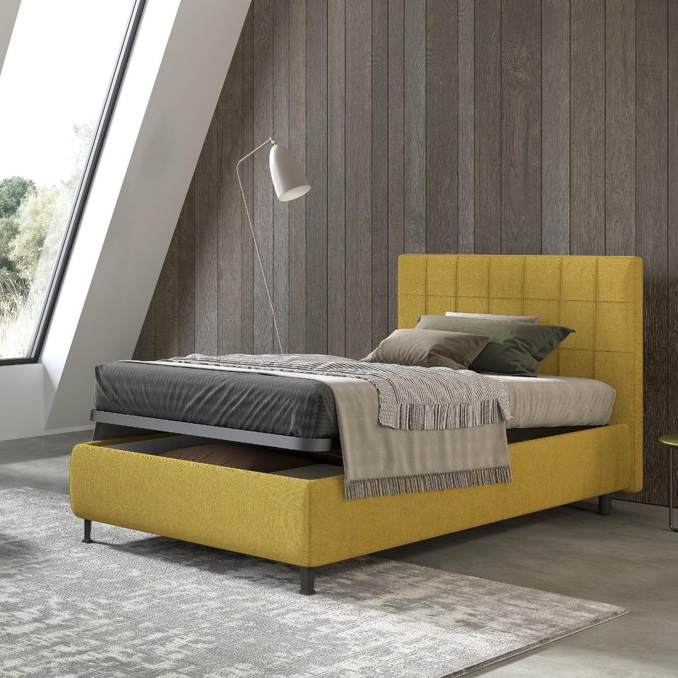 เตียงเก็บของขนาดควีนไซส์หุ้มผ้าสีมัสตาร์ด