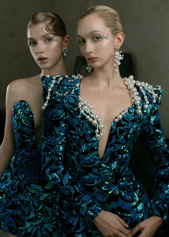 ควีนฟลอร่าชุดค็อกเทลสุดหรูชุดมินิรัดรูปประดับมุกและดอกไม้ตกแต่งระดับไฮเอนด์ Enzo & LEO Vietnam