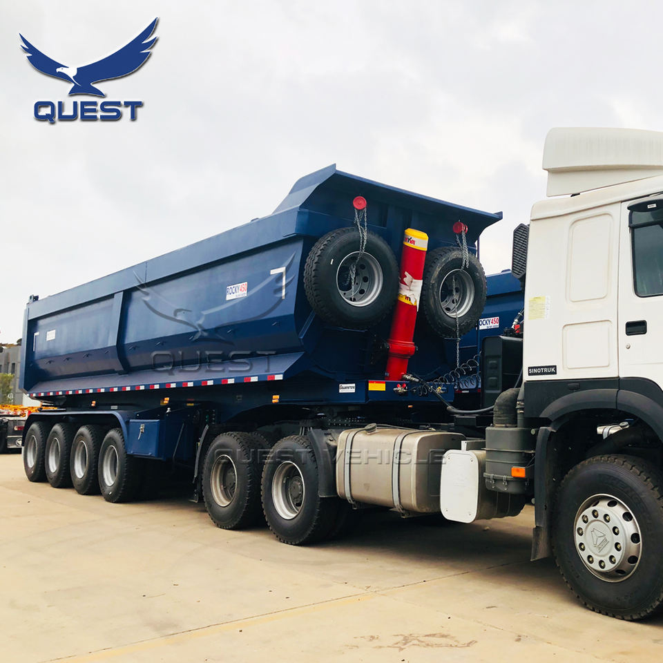 รถพ่วงดั๊มพ์แบบกึ่งพ่วง 4 เพลา รูปตัวยู ขนาด 45 ลูกบาศก์เมตร สำหรับขนส่งถ่านหินหรือหินกรวด QUEST พร้อมระบบไฮดรอลิกด้านหลัง