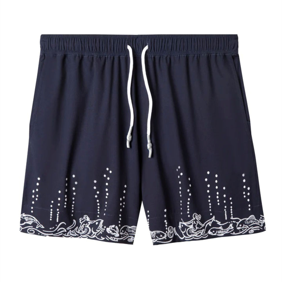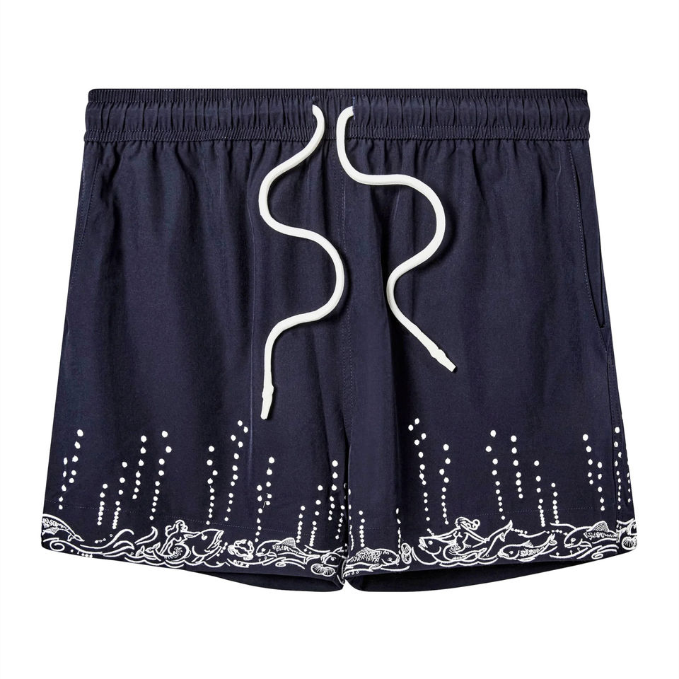 กางเกงว่ายน้ำขาสั้นสำหรับผู้ชายกางเกงขาสั้นแห้งเร็วกางเกงว่ายน้ำมีลายทางแบบฟองปักและซิลิโคน
