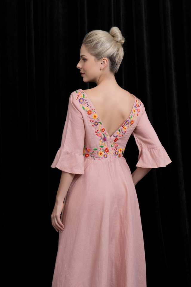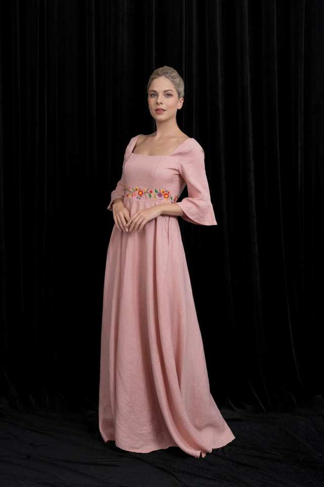 ชุดเดรสผ้าลินินสีชมพูควินน์ปักลายดอกไม้เหมาะอย่างยิ่งสำหรับงานแต่งงานหรือแม่ของชุดเจ้าสาว