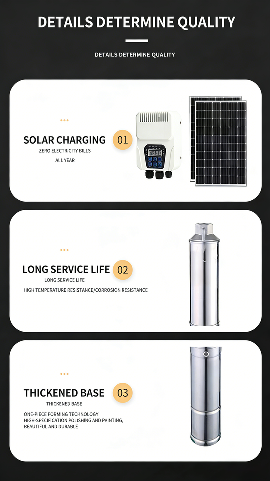ปั๊มน้ำบาดาลพลังงานแสงอาทิตย์ QY 4JC4.5-148-D110/1100, 1650 วัตต์, ระยะส่งน้ำ 148 เมตร, อัตราการไหล 4.5 ลูกบาศก์เมตร/ชั่วโมง | ยกสูงพิเศษและทนทาน | แหล่งน้ำในทะเลทรายโอเอซิส