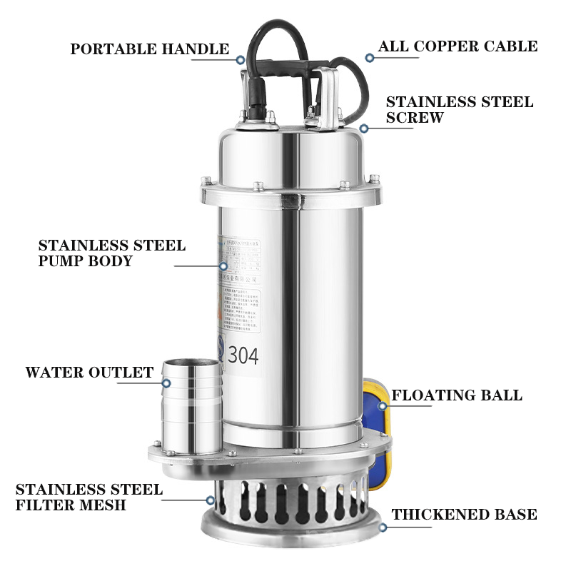 QY ปั้มน้ำพุแบบจุ่มน้ำขนาดเล็กทำจากสเตนเลสทนทานต่อการกัดกร่อน