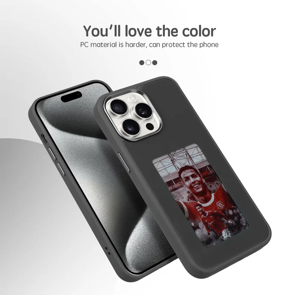 QY E-Ink สมาร์ทเคสสำหรับ iPhone 16 15 14 13 PRO MAX, มาใหม่กันกระแทก DIY