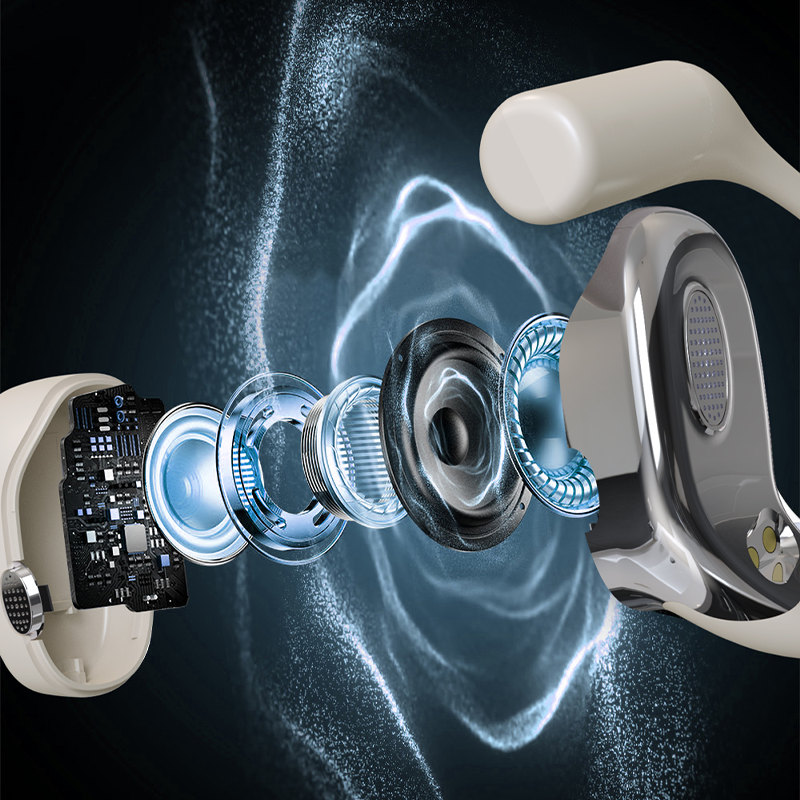 QY หูฟังกีฬาแบบพาโนรามาเต็มจอสัมผัสเสียง LED ไร้สายหูฟังแบบเกี่ยวหูชาร์จแบบถาวรแปลได้ฟรี