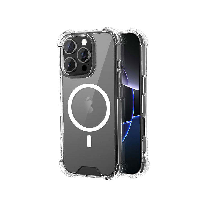 QY เคสแม่เหล็กใสสำหรับ iPhone 14 12 13 15 Pro เคสโทรศัพท์ป้องกันการตกสูงสุด
