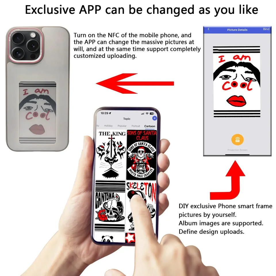 QY wholesale LED Smart E Ink Screen Phone Cases PC Cover for iPhone NFC 13 14 15 Pro Max DIY Phone Display case
