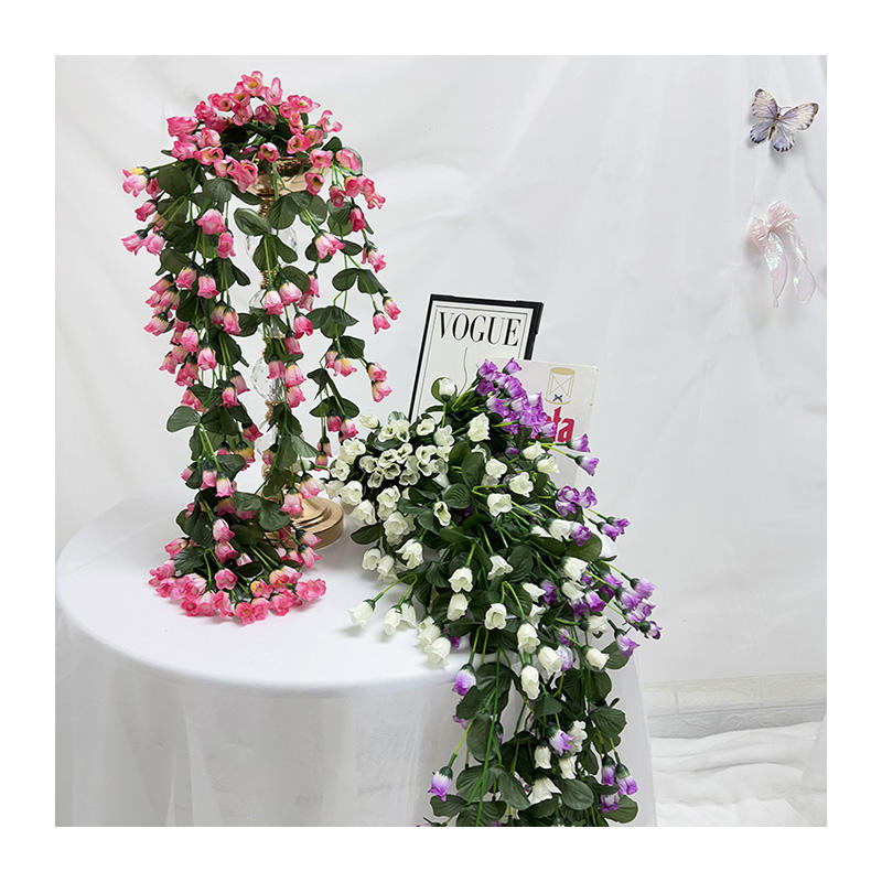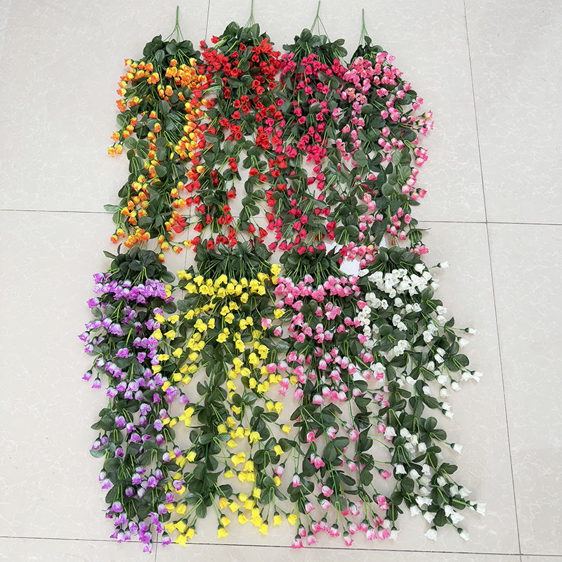ดอกตูมเล็กๆ QYYM-39ถูกแขวนในฝัน2ช่อดอกไม้ผ้าไหมเทียมแขวนผนังดอกกุหลาบเถาวัลย์ฉากหลังสำหรับจัดงานแต่งงานในสวน