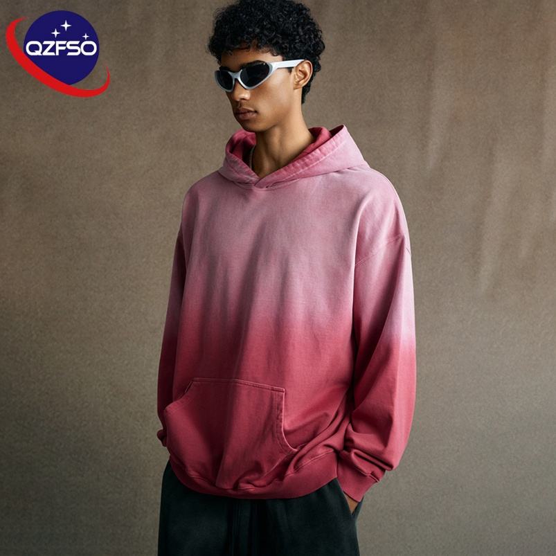 Qzfso เสื้อฮู้ด450gsm ผ้าฝ้ายฝรั่งเศสผ้าเทอร์รี่ซักซักเสื้อผ้าวินเทจแบบมีฮู้ดเข้ารูปสำหรับผู้ชายผ้าคอตตอน100% ออกแบบได้ตามต้องการ