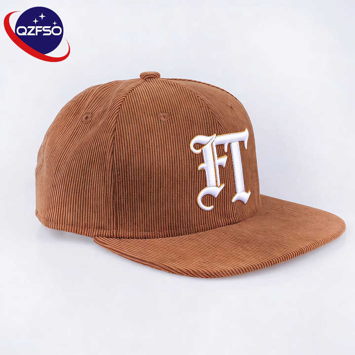 ผู้ผลิตหมวกแก๊ป QZFSO แบบสั่งทำ 6 แผง ผ้าคอร์ดูรอย ปีกแบน ปักลาย 3 มิติ หมวกเบสบอลอะคริลิค