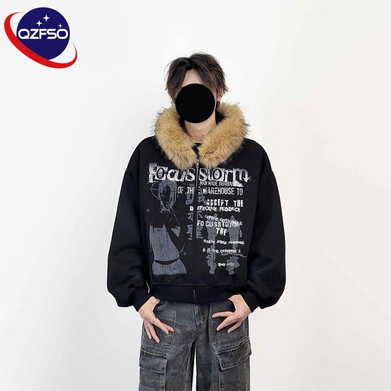 QZfso เสื้อกันหนาวซักลายพิมพ์ DTG สำหรับผู้ชายกำหนดเองได้ผ้าคอตตอนผ้าคอตตอนผ้าซักแบบรูดซิปมีฮู้ดขนสัตว์โอเวอร์ไซส์สำหรับผู้ชาย
