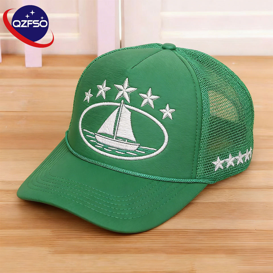 หมวกแก๊ปตาข่ายปักลาย 3 มิติ แฟชั่นฤดูร้อน QZFSO สไตล์สตรีทเทรนด์ ปีกโค้ง ลายตัวอักษร