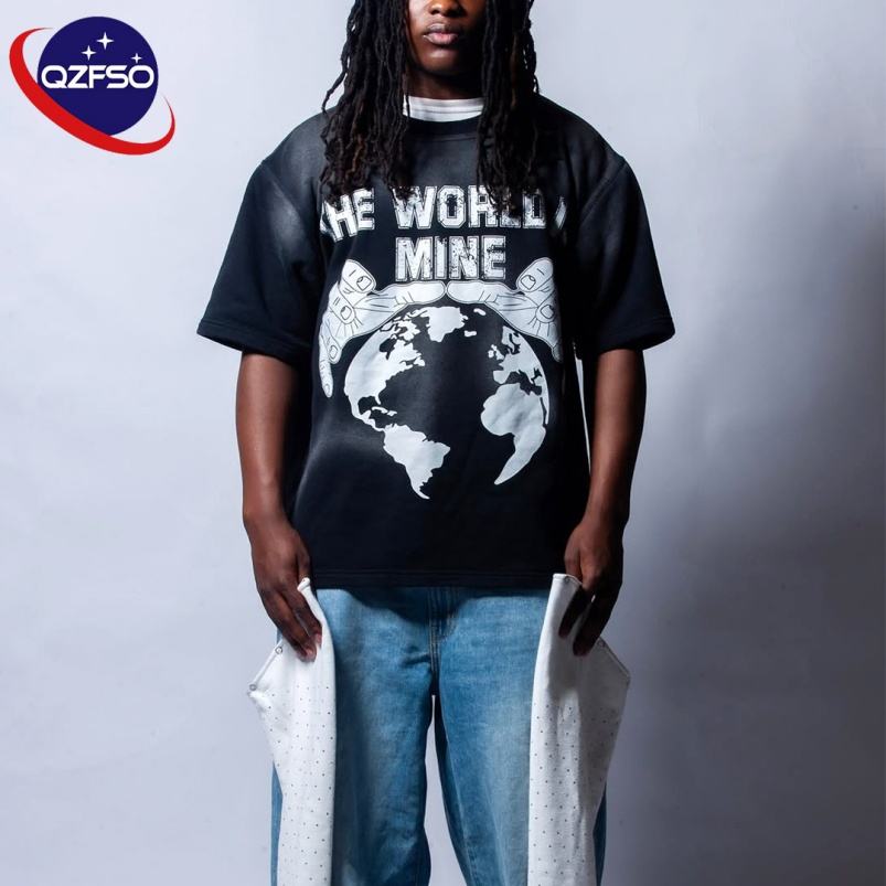 Qzfso เสื้อยืดกราฟิกตามสั่งแนวสตรีท260 GSM heavyweight boxy ลำลองสวมใส่ในแนวสตรีทวินเทจซักกรดพิมพ์ลาย DTG 100% ผ้าฝ้าย