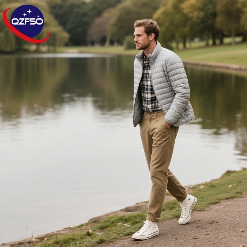Qzfso เสื้อดาวน์แจ็คเก็ตผ้านุ่มสำหรับผู้ชาย, เสื้อโค้ทบุนวมหนาให้ความอบอุ่นในฤดูหนาว