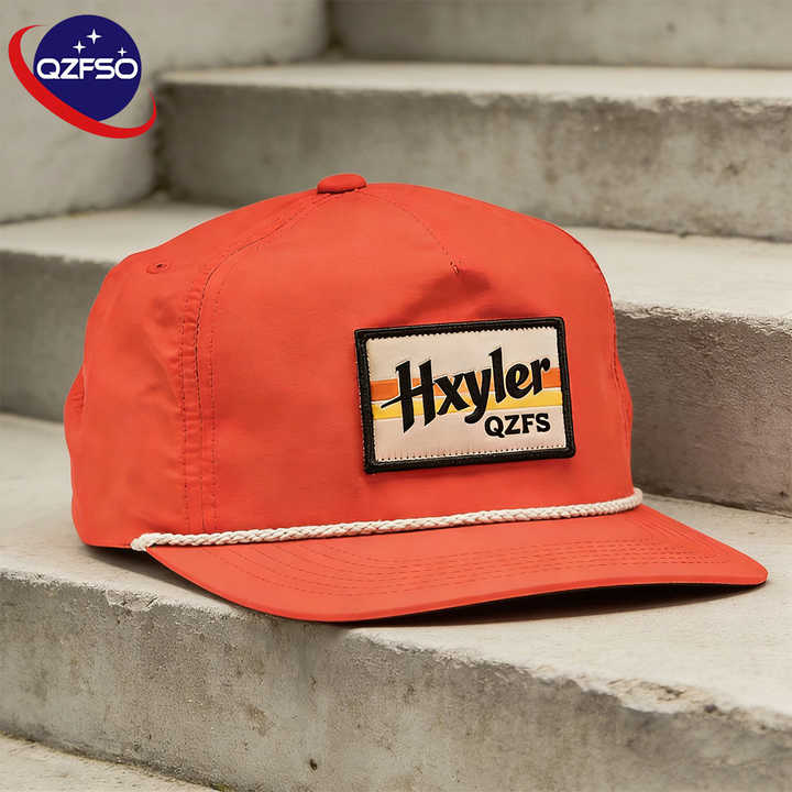 หมวกเบสบอลไนลอนกันน้ำแบบไม่มีโครง 5 ชิ้น พร้อมปักโลโก้ QZFSO แบบวินเทจ ตกแต่งด้วยผ้าฝ้ายปักลาย และติดกระดุมแบบ Snapback