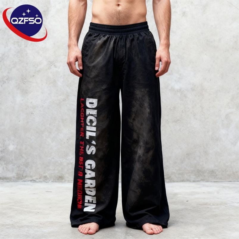 Qzfso DTG กางเกงสเวตเตอร์มีเชือกรูดผ้าคอตตอนพิมพ์ลาย DTG ใส่ได้ทั้งชายและหญิงกางเกงขาบานออกแบบโลโก้ได้ตามต้องการ