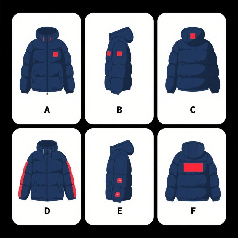 ตำแหน่งโลโก้:ด้านหน้า, ด้านหลัง, แขนเสื้อด้านซ้าย, ขอบล่าง, แขนเสื้อด้านขวา, หลังคอ