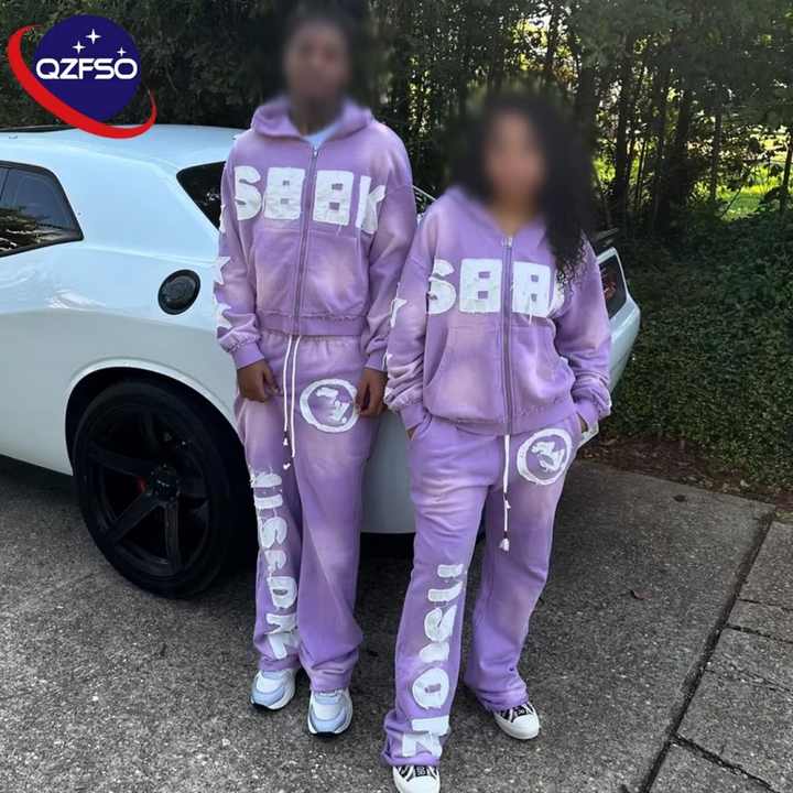 ผู้ผลิต QZFSO ผ้าฝ้าย 100% 480 แกรม แบบยูนิเซ็กซ์ ล้างสีแบบแอซิดวอช แต่งลายปักแบบแอพพลิเค ย้อมสีพื้น ปักโลโก้ตามสั่ง ซิปเต็มตัว