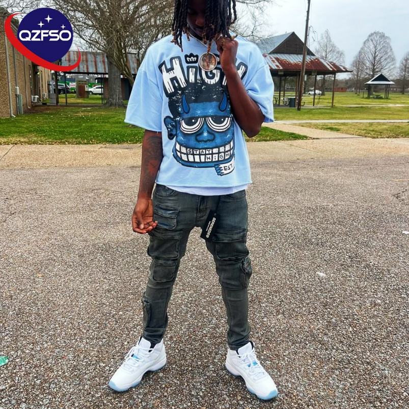 เสื้อยืดผ้าฝ้าย200แกรมสำหรับผู้ชายเสื้อยืดวินเทจเสื้อยืดลายสตรีทเสื้อยืดพิมพ์ลายบ็อกซี่พิมพ์โลโก้ตามสั่ง