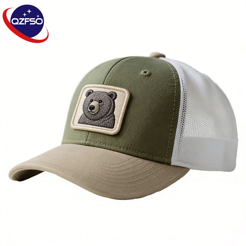 หมวกแก๊ปทรง Trucker 6 แผง ดีไซน์ OEM แบบกำหนดเอง คุณภาพสูง สีเขียวมะกอก พร้อมแผ่น PVC สำหรับฤดูร้อน เหมาะสำหรับเล่นกีฬาและกิจกรรมกลางแจ้ง