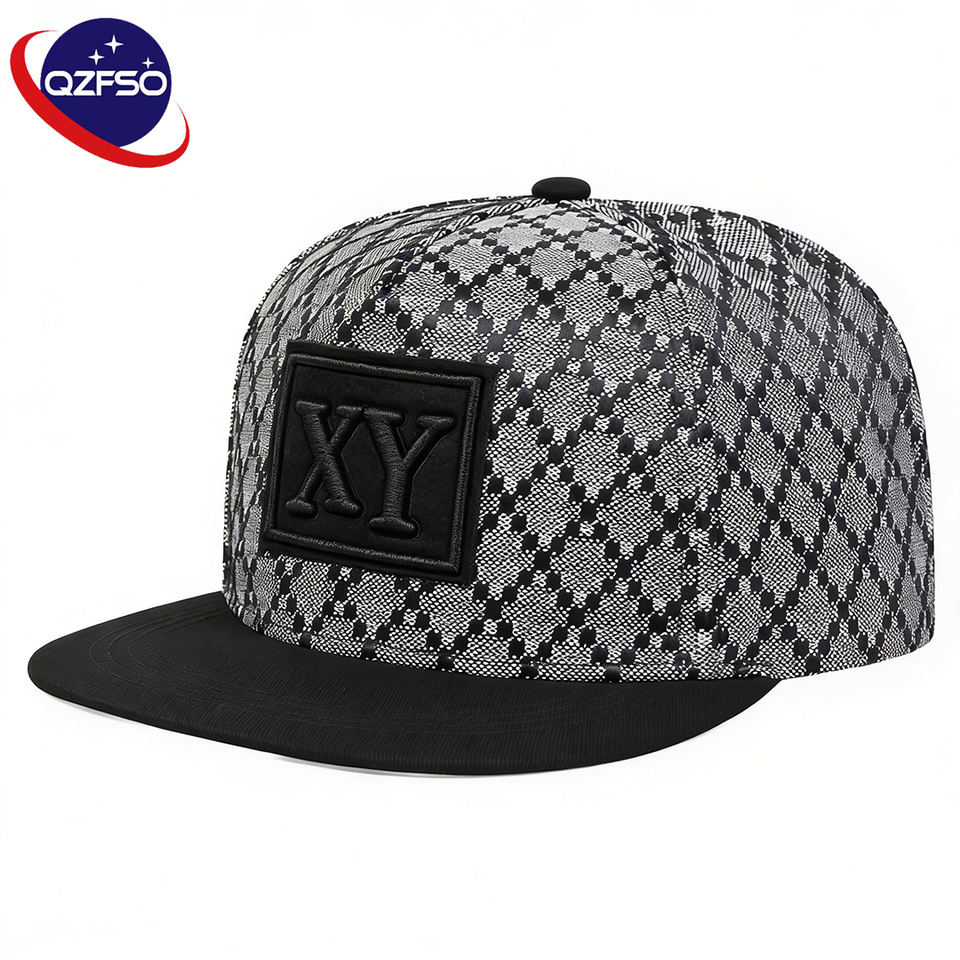 หมวกเบสบอลยีนส์ลายตารางสไตล์สปอร์ตแนวสตรีท QZFSO ปักลายตัวอักษรแบบ 3 มิติ หมวกแก๊ป 6 แผงแบบ Snapback สำหรับเดินทาง