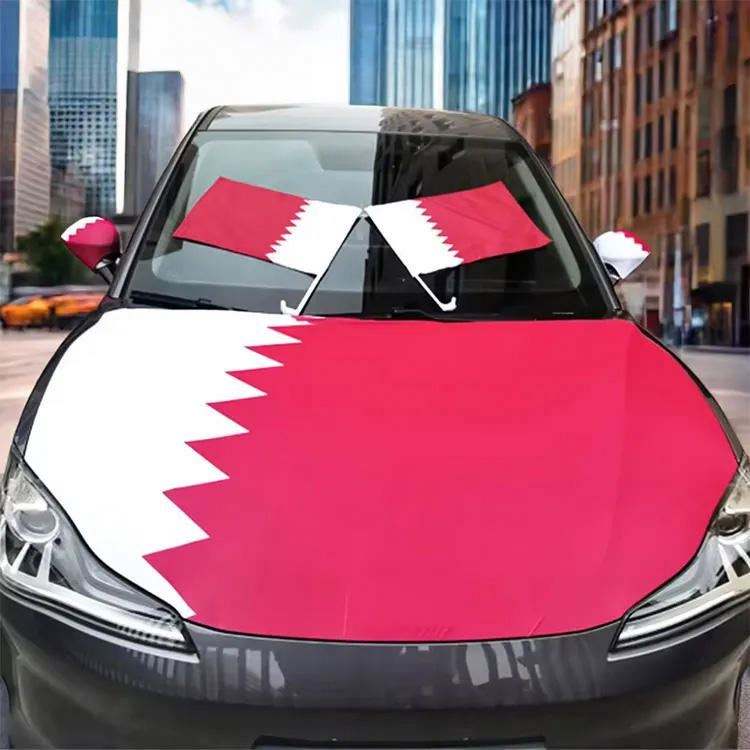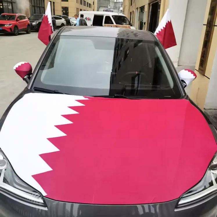 ผ้าคลุมฝากระโปรงรถยนต์ลายธงชาติประเทศต่างๆ ของกาตาร์ ผลิตจากโพลีเอสเตอร์ พร้อมผ้าคลุมกระจกมองข้าง