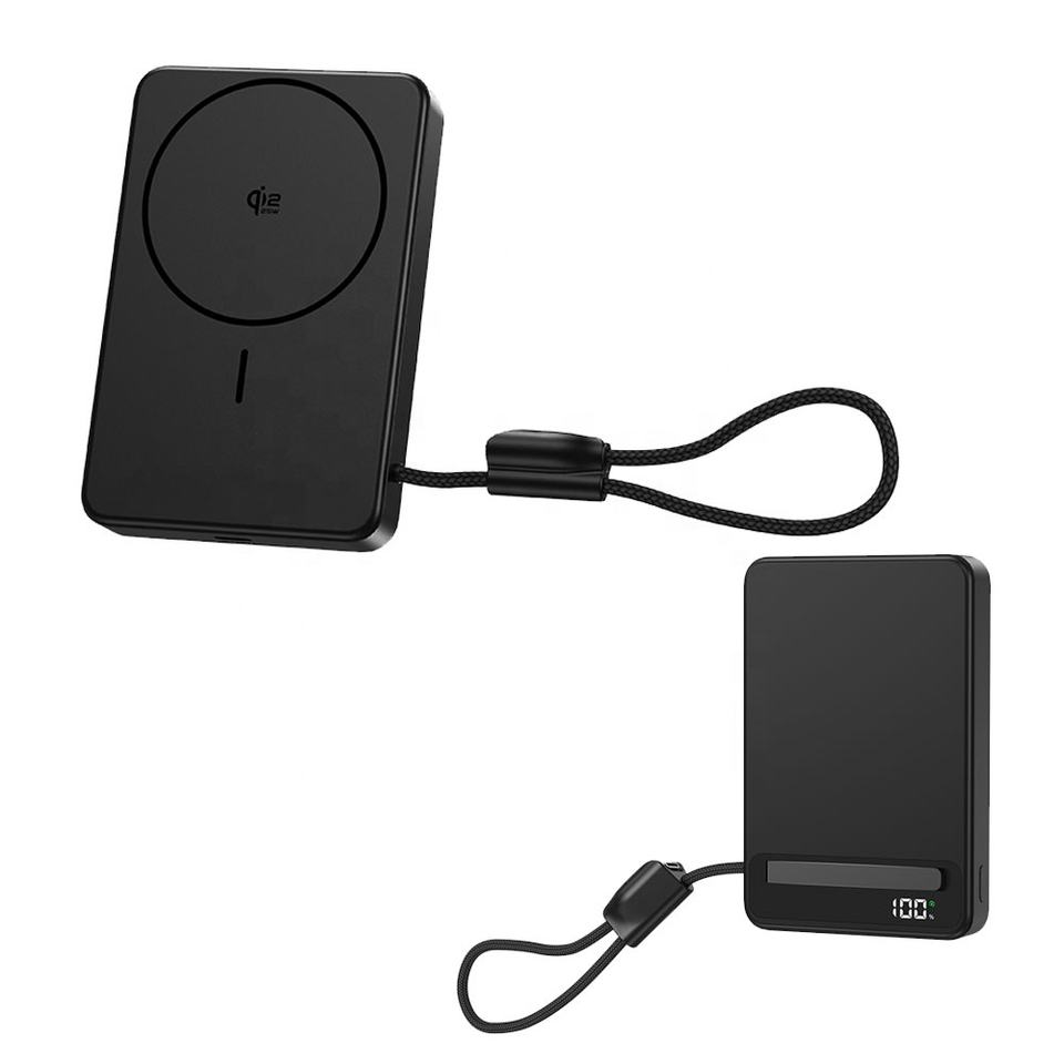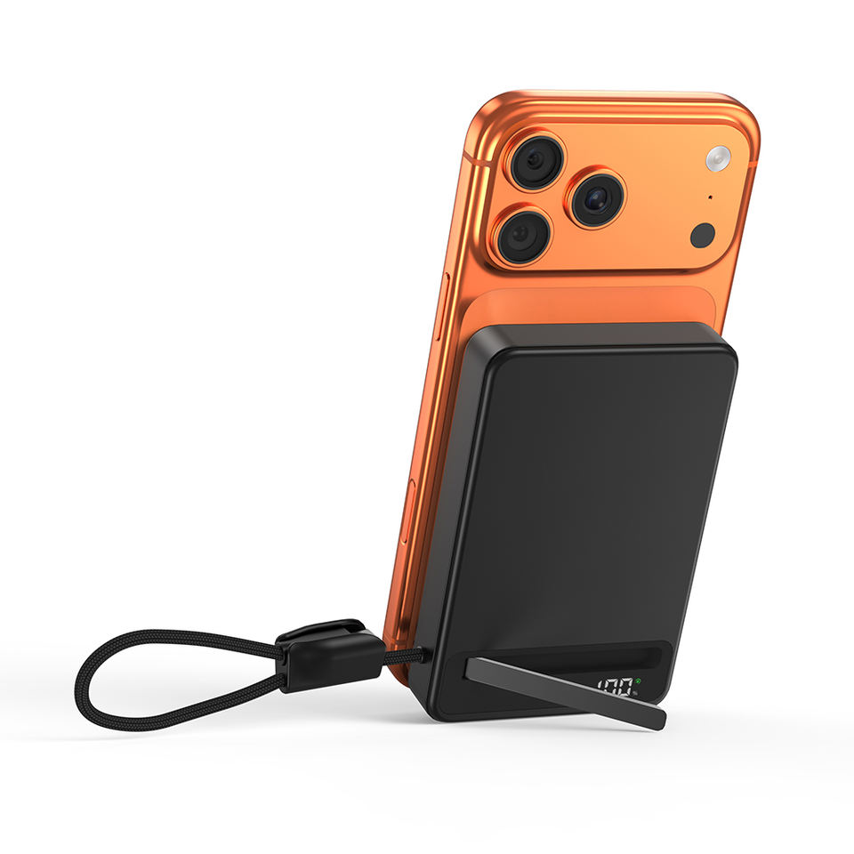 Qi2.2 Certified 25W 10000mAh แบตสำรองแม่เหล็กไร้สายแบบกึ่งแข็ง ชาร์จเร็ว พร้อมสายในตัวและขาตั้ง