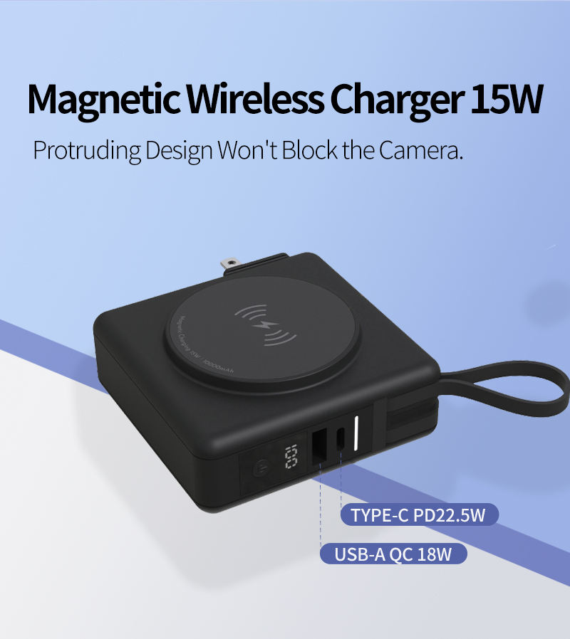 พาวเวอร์แบงค์ Qi2 10000mAh ที่ชาร์จไร้สาย3 in 1ที่ชาร์จไร้สายแบบพกพา PD 22.5W ชาร์จเร็วที่วางโทรศัพท์พาวเวอร์แบงค์