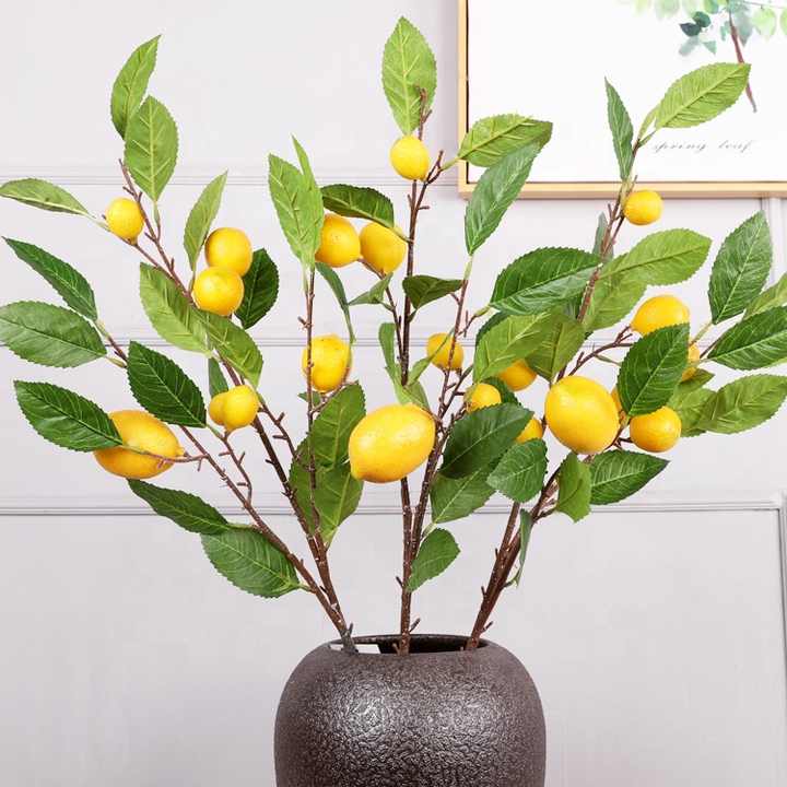Name:Fake Fruits Decoration 7 Heads Plastic Artificial Lemon Bunch