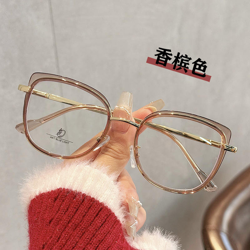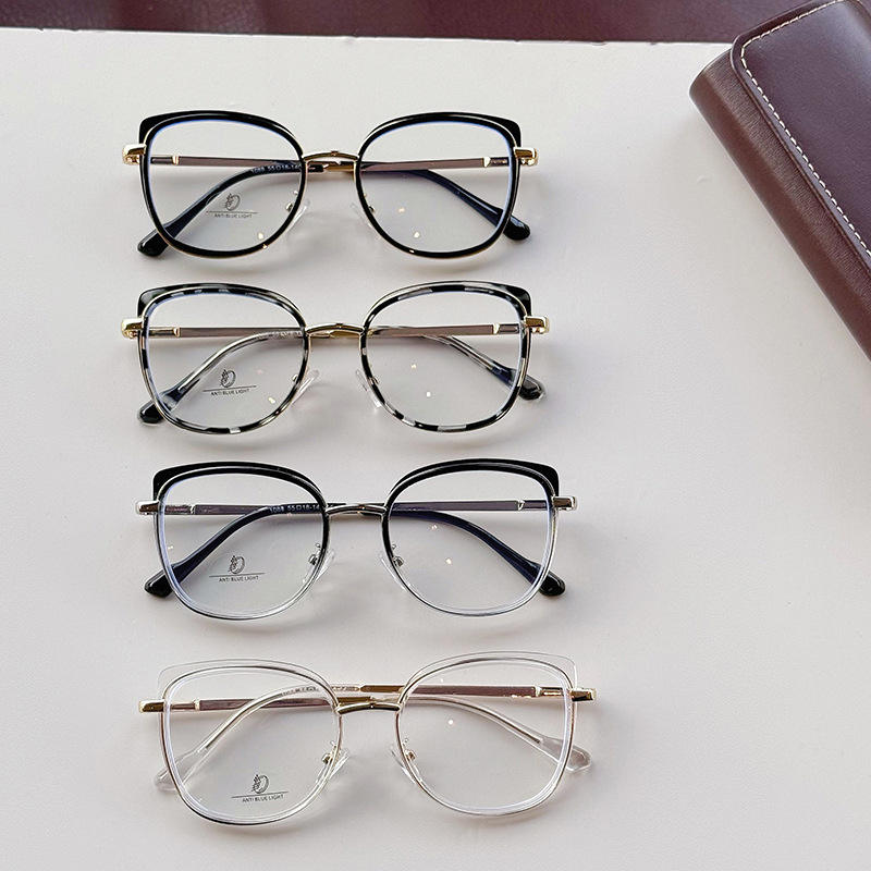 กรอบแว่นตา Qianai Cat Eye รุ่น TR90 ขาแว่นแบบสปริง ป้องกันแสงสีฟ้า สำหรับผู้หญิง กรอบเต็ม เลนส์ AC ดีไซน์ทรงไม่สมมาตร