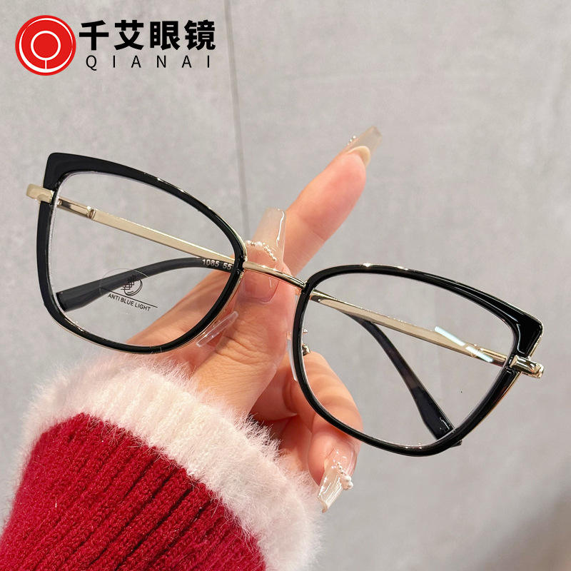 เฉียนไน แคทอายกรอบแว่นตา TR90 ป้องกันแสงสีฟ้าผู้หญิงกรอบเต็มรูปแบบรูปร่างไม่สม่ำเสมอ JS9-3-1085