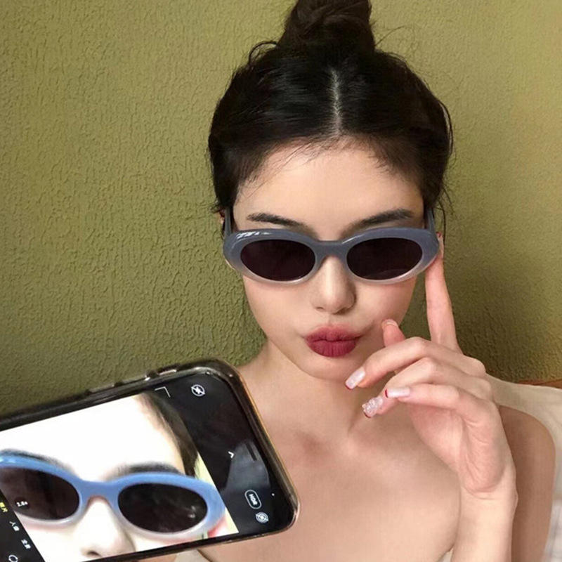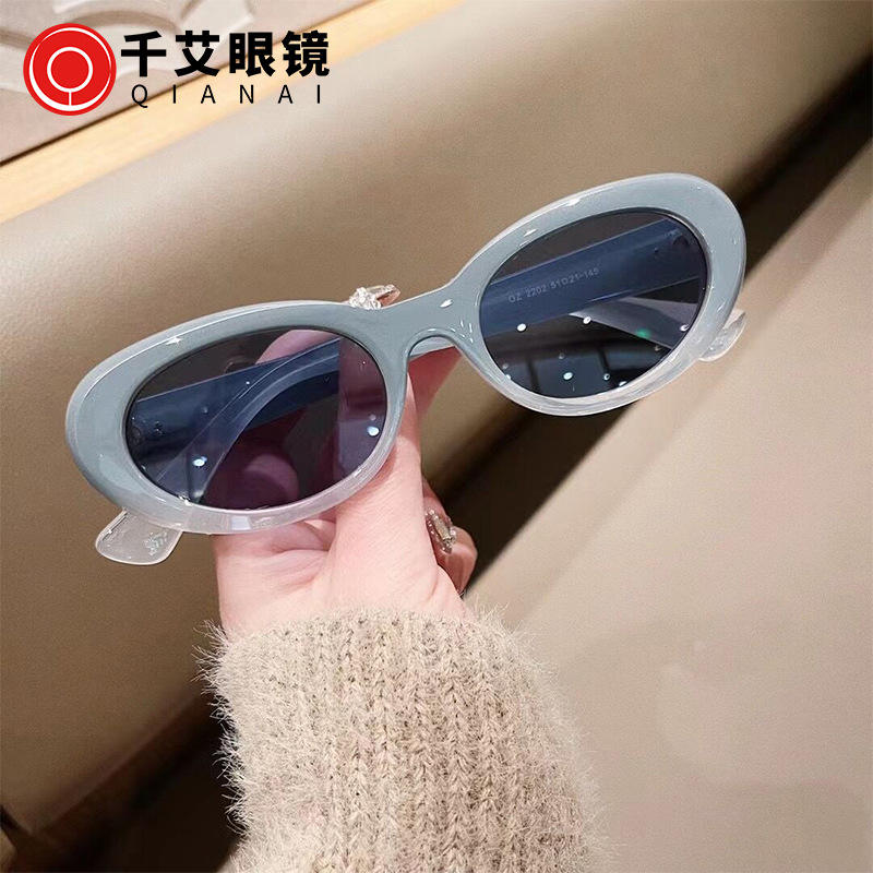 แว่นกันแดด Qianai Cat Eye รุ่น H5-2202 กรอบสีน้ำเงิน ป้องกันรังสียูวี 400 สำหรับทุกเพศทุกวัย แฟชั่นสไตล์สตรีท ดีไซน์ทรงแปลกตา
