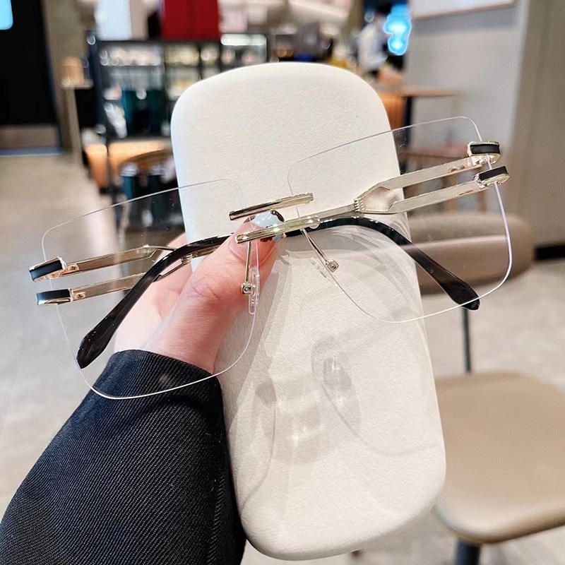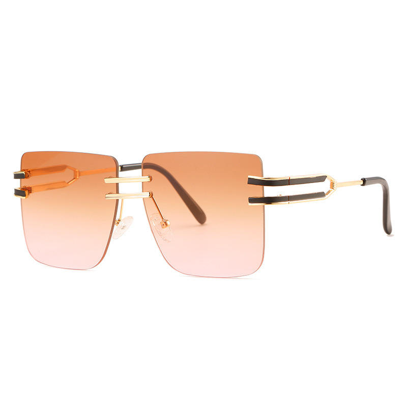 แว่นกันแดดไร้กรอบเฉียนไน เลนส์ไล่เฉดสีชมพู กรอบโลหะทรงสี่เหลี่ยมขนาดใหญ่ สำหรับผู้หญิง ป้องกันรังสียูวี